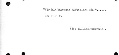 //// "Hör hur kanonens högtidliga då.n "...... //// Se: T 15 f. //// * //// KB:3 SKILLINGTRYCKSREG. ////