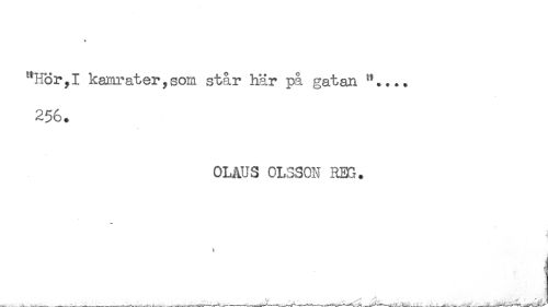 //// "Hör,I kamrater,som står här på gatan ".... //// 256. //// OLAUS OLSSON R31. //// < //// t ////