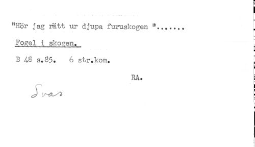 //// "Hor jag rätt ur djupa furuskogen //// Fo^el i skogen. = //// .H //// B 48 s.8'5. 6 str.kom. } //// L- //// H //// RÅ. //// r ! //// a //// E ////