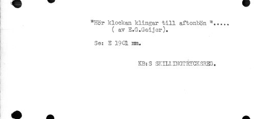 //// "Hör klockan klingar till aftonbön "..... //// ( av E.G.Geijer). //// Se: E 1901 mm. //// KB: S SK ILI. INGT RYCK SREK. //// : //// t //// * ////