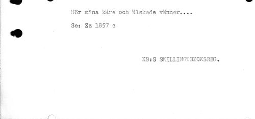 //// Hör mina käre och älskade vänner.... //// Se: Zz 1857 c //// - //// ! //// i //// = ' //// : //// KB:S SKILI.IN^.'RYCKSRm. //// ! //// I //// ! ////