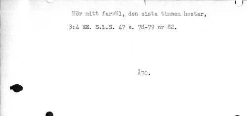 //// Hör mitt farväl, den sista timmen hastar, //// i 3:4 EE. S.L.S. 47 s. 73-79 nr 82. //// ÅBO. ////