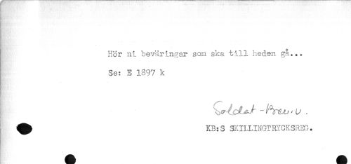 //// Hor ni beväringår som ska till heden gå... //// Se: E 1897 k //// * //// ^ i //// ^ KB:S SKILLINCTR?CKSR5D. ////