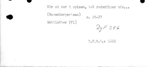 //// Hör ni mor i spisen, två rederliger min... //// t //// ^^ (Rosenborgsvisan) ^ ,.^^ //// Eskilsäter (Vi) //// T p (i . iP23 //// < ////