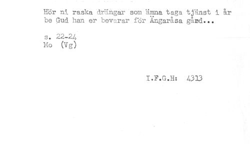 //// Hör ni raska drängar som äxma taga tjänst i år //// be Gud han er bevarar för Angaråsa gåad... //// s. 22-2^ //// Mo (V g) //// I.F.GJi: 43T3 ////