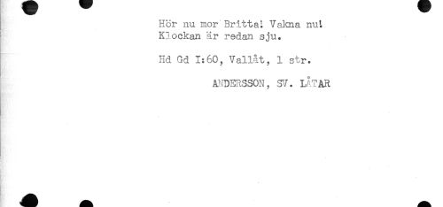 //// Hor nu mor Britta: Vakna nut //// Klockan är redan sju. //// Hd Gd 1:60, Vallåt, 1 str. //// ANDERSSON, SV. LÅTAR ////
