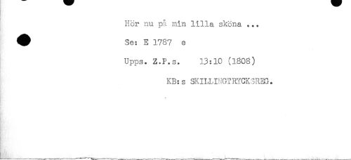 //// & //// Hör nu på min lilla sköna ... //// ^ Se: E 1787 e //// Upps. Z.P.St 13:10 (1808) //// KB: s SKILHNGTRYCK3REG. //// - //// KV/ //// i* //// i //// - ////