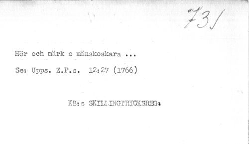 //// .w //// Hör och märk o mänskoskara ... //// . — < — - - . //// 3e: Upps. Z.F.s. 12:27 (1766) //// , //// - //// KB: s SKnJ^GTRYCKSREG* ////