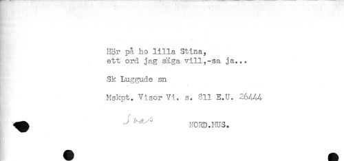//// Hor på ho lilla Stina, //// ett ord jag säga vill,-sa ja... //// Sk Luggude sn //// . - * .r- ... . - - . .. . //// . //// Mskpt. Visor Vi. s. 811 E.U. 26/^4 //// ^^ ' ' " NC3D.IIUS. ////