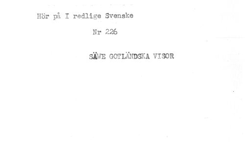 //// Hor på I redlige Svenske //// Nr 226 //// SA¥E GCTLANDSKA VISOR ////