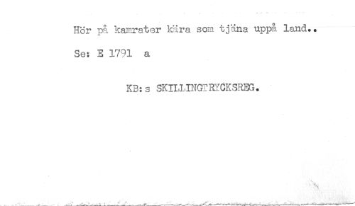 //// Hör på kamrater kära som tjäna, uppå land.. //// Sex E 1791 a //// KB:s SKILLINGTRYCKSREG. //// .. - ////