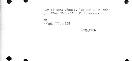 //// Hör på kära vänner, jag har nu en salt //// att Eder förtroligt förkunna.... //// SÖ //// Mskpt III.s.339 //// NORD.HUS. ////