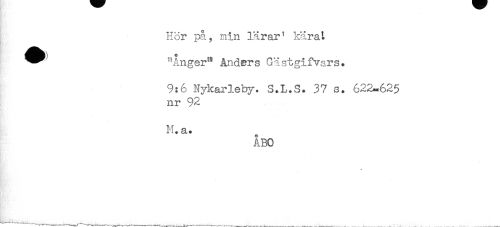 //// Hör på, min lärar' käraL //// ^^ "Ånger" Anders Gästgifvars. //// 9:6 Nykarleby. S.L.S. 37 s. 622-625 //// nr 92 //// M. a. //// ÅBO ////