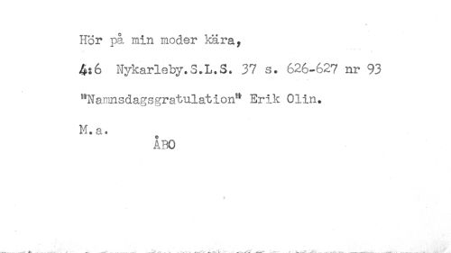 //// Hör på min moder kära, //// 4:6 Nykarleby.S.L.S. 37 s. 626-627 nr 93 //// "Namnsdagsgratulation" Erik Olin. //// H.a. //// ÅBO ////