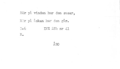 //// ! //// { //// < //// Hor på vinden hur den susar, //// * //// - * //// Hör på åskan hur den går. //// 1:6 INE 28b nr Ål //// N. //// ÅBO ////