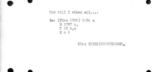 //// Hör till I riken all.... //// Se: (Före 1700) 16% a //// E 1787 n, //// T 19 b,c //// Z c 2 //// KB: s SKIH,INGTRYCKSRm, //// . //// — ////