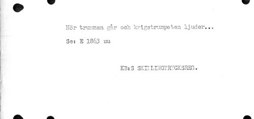 //// Hör trumman går och krigstrumpeten ljuder... //// Se: E 1863 uu //// I* i' //// - //// KB: S SKI1LINGT RYCKSREG. //// '/jh' //// i ////