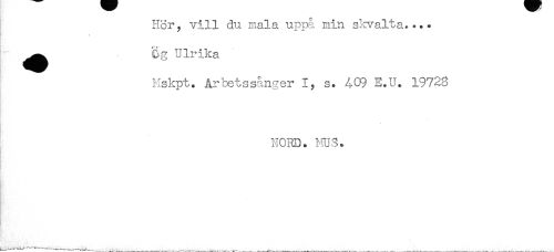 //// r - //// Hor, vill du mala uppå min skvalta...* //// ^^ Ulrika //// Hskpt. Arbetsgånger I, s. 4C9 E.U. 19728 //// NORD. MUS. //// ^_____r-^".-..^'^"^"*" _____ _ ^ ^ ^ ^ ^ ^ _ ___- ////