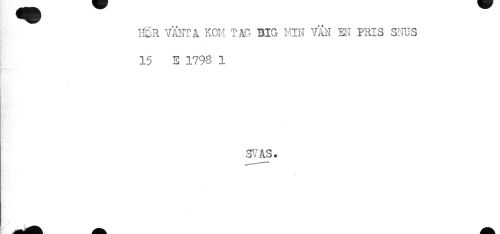 //// mR VÄNTA KOM TAG BIG MIN VÄN HJ PRIS SNUS //// 15 E 1798 1 //// * //// SV AS* //// nts in in ////