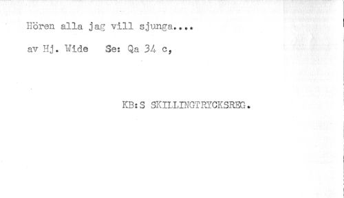 //// Hören alla jag vill sjunga.... //// av Hj. Wide Se: Qa 34 c, //// KB:S SKILLINGTRYCKSREG. //// c //// < //// t //// ! //// : ////