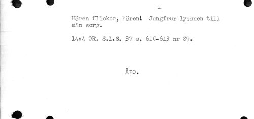 //// Hören flickor, riörent Jungfrur lyssnen till //// min sorg. //// 14:4 OR. 3.L.S. 37 s. 61G-613 nr 89. //// . //// ^ ÅBO. //// * //// t ////