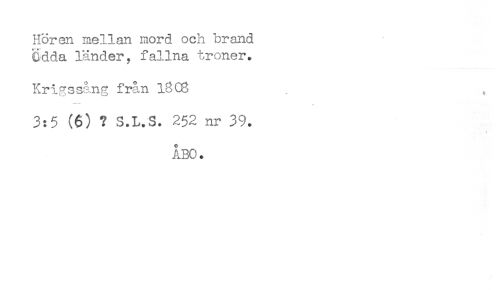 //// Hören mellan mord och brand //// Ödda länder, fallna troner. //// Krigssang från 18C8 . , //// * * — //// 3:5 (6) ? S.L.S. 252 nr 39. //// ÅBO. ////