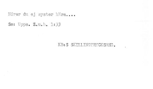 //// Horer 3u ej syster kära.... //// Se: Upps. Z.u.h. 1:33 //// K3:S SKILLINGTRYCKSRm. //// * ////