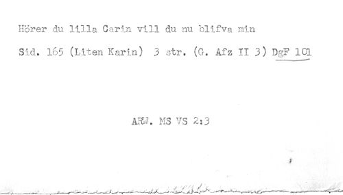 //// Horer du lilla Carin vill du nu blifva min //// Sid. 165 (Liten Karin) 3 str. (G. Afz II 3) DgF 101 //// ..... //// A3W* M3 VS 2:3 ////