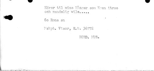 //// j Hörer til mine Hänger som ären itroo //// och mandelig wile..... //// — Go Rone sn //// Fskpt. Visor, H.'. 36772 //// NORD. ms. ////