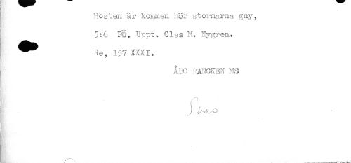 //// i Hösten är kommen hör stormarna gny, //// 5:6 PS* Uppt. Glas M. Nygren. //// ^^ Re, 157 xxxi. //// I ÅBO ^'ANCKEN MS //// J ////