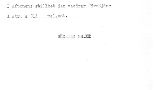 //// I aftonens stillhet jag vandrar lornojder //// 1 str. s C14 mel.not. //// ÄDLING H3.BE ////