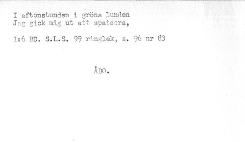 //// I aftonstunden i gröna lunden //// Jag gick mig ut att spatsera, //// 1:6 BD. S.L.S. 99 ringlek, s. 96 nr 83 //// ÅBO.. ////