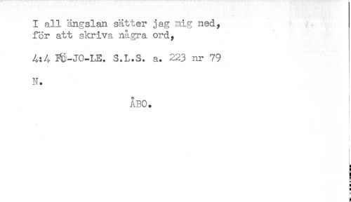 //// I all ängslan sätter jag mig ned, //// for att skriva några ord, //// JO-LE. S.L.S. a. 223 nr 79 //// N. //// i //// ÅBO. //// i //// < //// . //// i //// ! ////