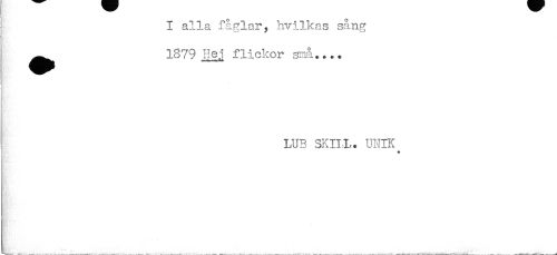 //// I alla fåglar, hvilkas sång //// ^^ 1879 Hej flickor små.... //// ! //// 1 //// I LUB SKIIL. UNIK //// + //// r ////