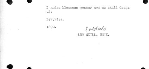 //// I andra klassens gossar som nu skall draga //// ut. //// Bev.visa. //// LUB 3KILI,. UNIK. //// * //// V ////