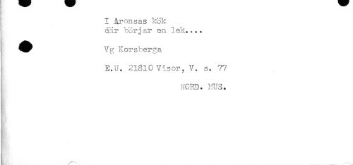 //// t //// I Åronsas kök //// där börjar en lek.... //// il hk //// { Vg Korsberga //// j E.U. 21810 Visor, V. s. 77 //// i //// NCRD. HUS. ////