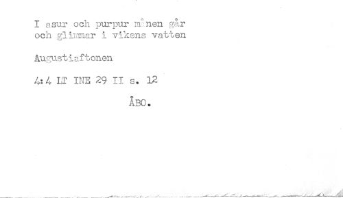 //// I asur och purpur m"nen går //// och gliimar i vikens vatten //// Augustiaftonen //// LT INE 29 II s. 12 //// ÅBO. ////