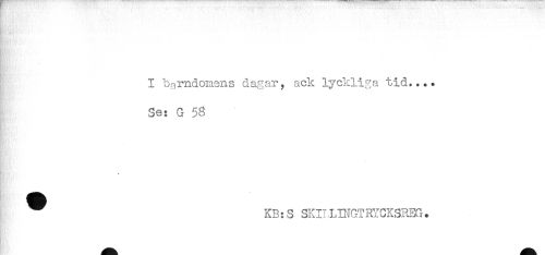//// n . '..''.' < . < //// ' . ' //// I barndomens dagar, ack lyckliga tid.... //// . //// Se: G 58 //// KB:S SKIILDIGTRYCKSREG. ////