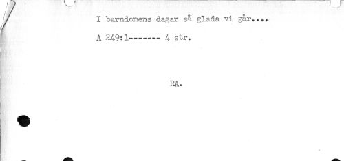 //// / I barndomens dagar så glada vi går.... //// ' A 249:1—.....4 str. //// mP'' //// * //// - //// Rå. //// - //// .. //// _ ////