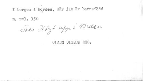 //// I bergen i Norden, där jag är barnafödd //// m. mel. 150 //// ^ ^^ yy- ' - //// OLAUS OI.SSON REG. ////