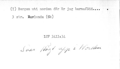 //// (i) Bergen uti norden där är jag barnafödd.... . //// 3 str. Ranrlunda (Sk) //// LUF 3A11:3A //// ..J / //// ! //// I ////