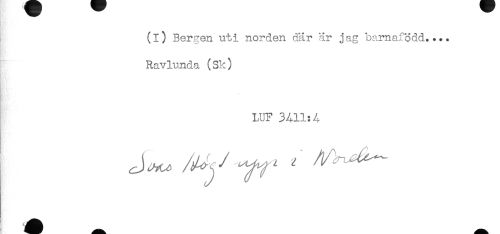 //// (i) Bergen uti norden där är jag barnafodd**** //// Ravlunda (Sk) //// LUF 3A11:A //// J^. yy^ ^ //// ! __ //// åJH tå ////