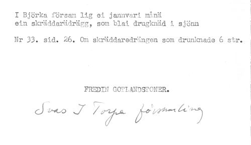 //// I B j orka for sam lig ei jannvari mi.nä //// ein skräddarädräggy som blai drugknäd i sjönn i //// Nr 33. sid. 26. Om skräddaredrängen som drunknade 6 str. j //// < //// : //// i //// FREDIN G0J.'HND3rCNER. //// (J /^y^ ^ ,, ////