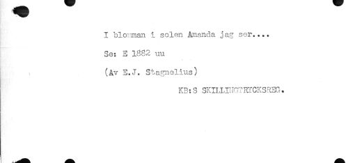 //// ** ^^^^^^^ //// I bl or man i solen Amanda jag ser.... //// Se: E 1882 uu //// \ (Av E.J. Stagnelius) //// KB: 3 SKILLINGTm^CKSHm. ////