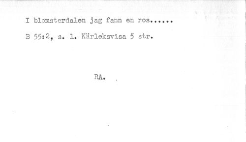 //// I blomsterdalen jag fann en ros...... //// B 55:2, s. 1. Kärleksvisa 5 str. //// i //// ! //// RA. //// t //// ! //// < ////