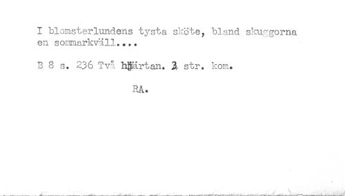 //// I blomsterlundens tysta sköte, bland skuggorna //// en sommarkväll.... //// B 8 s. 236 T va hgärtan. 2. str. kom. //// RA. ////