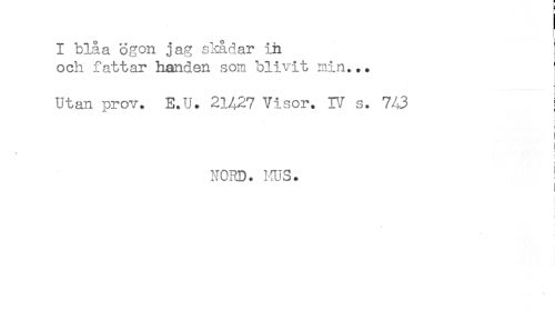 //// I blåa Ögon jag skådar ih //// och fattar handen som blivit min... //// - //// Utan prov. E.U. 21427 Visor. IV s. 743 i //// t //// ! //// t //// NORD. KUS. ! ////