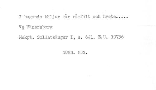 //// I bugande böljor går rågfält och hvete..... //// Vg Wnersborg //// Mskpt. Soldatsånger I, s. 6A1. E.U. 19736 //// NORD. MUS. ////