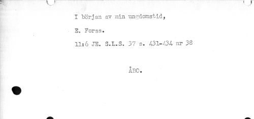 //// I början av min ungdomstid, //// E. Forss* //// < //// 11:6 JE. S.L.S. 37 s. A31-43A nr 38 //// ÅBC. ////