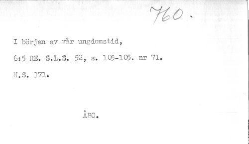 //// 7% <9 - //// / //// I början av vår ungdomstid, //// 6:5 RE. S.L.3. 52, s. 105-105. nr 71. //// N.S. 171. //// ÅBO. ////